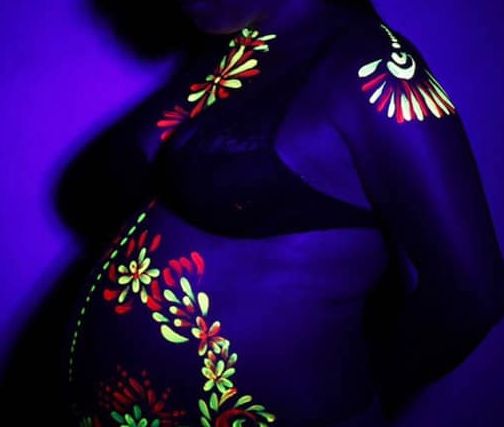 Body art con l’utilizzo di colori fluorescenti reagenti ai raggi UV.